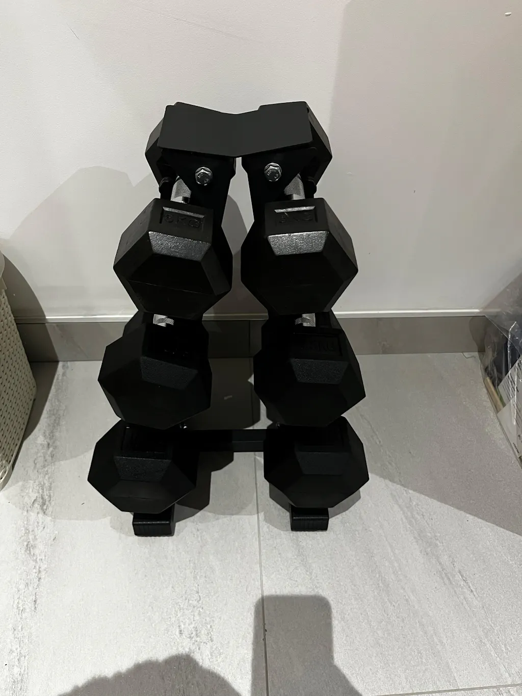 Easy to assemble and maintain, this rack requires minimal effort to set up and can be easily wiped clean to keep it in pristine condition. Its versatile design allows it to accommodate a wide range of dumbbell sizes, making it suitable for all fitness levels and training styles. *PLEASE NOTE: this dumbbell rack is only suitable for lighter weights up to 15kg and may not fit multiple large hex and round dumbbells, feel free to message for more info.