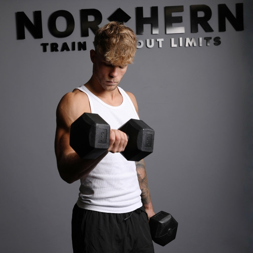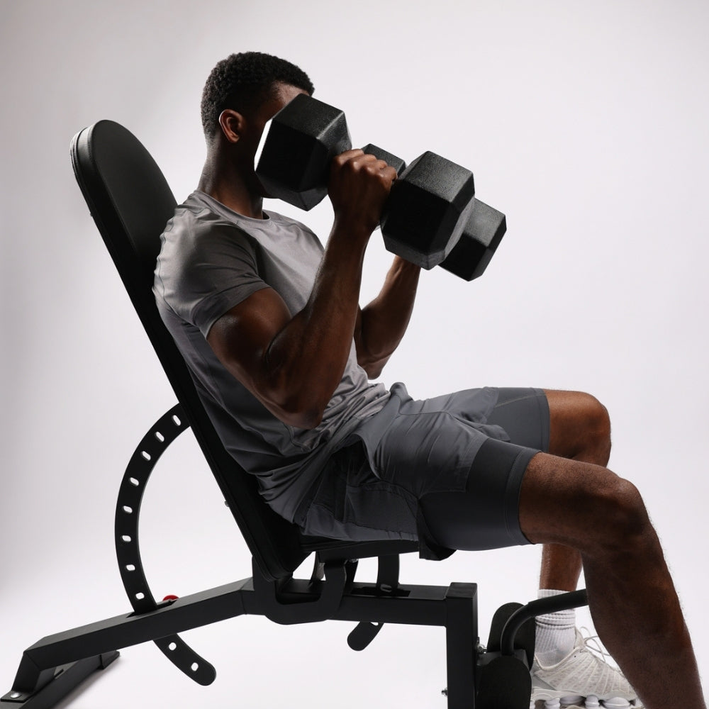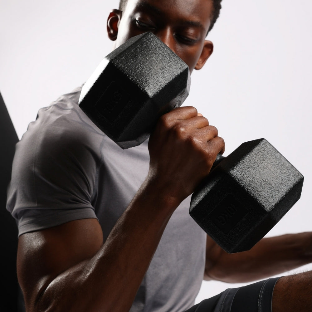 Stable Hex Design: Keeps weights from rolling, ensuring safety during exercises.